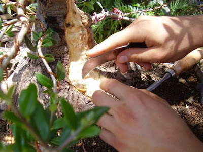 Al tiempo mi casi-bonsái necesitaba algunos retoques. Para ayudarme con esta tarea, Sacha y Walter, alumnos y amigos, no dudaron en ensuciarse las manos.